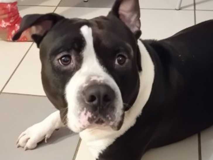 Kaya est son nom, ce chien noir et blanc de quatre ans que nous vous proposons à l'adoption. Il ne peut pas vivre ni avec ses congénères, ni avec des chats.