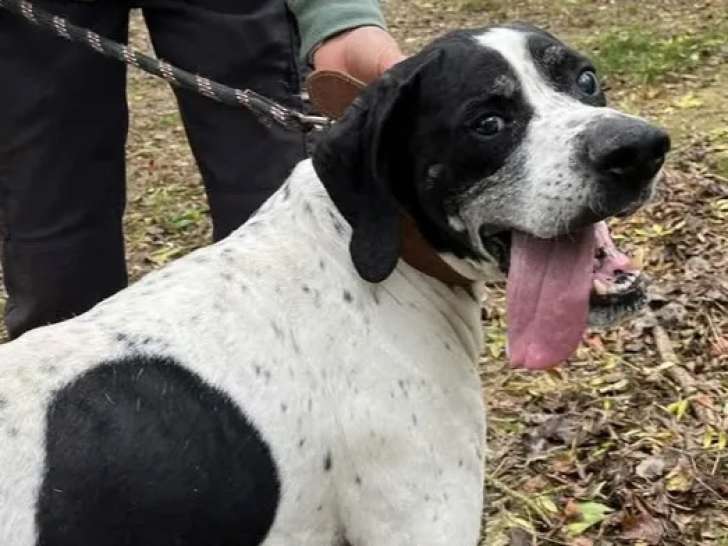 Nous avons le plaisir de vous proposer à l’adoption Nestor, un chien Pointer anglais au pelage noir et blanc de huit ans, calme et gentil, qui aime les balades tranquilles, les câlins et s’entend avec les autres chiens.