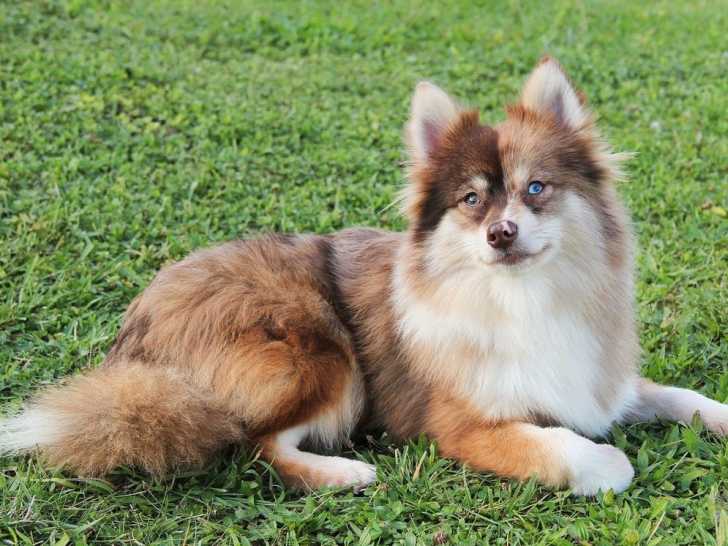 L’élevage des Ailes d’Eros vous propose un chien Pomsky de couleur chocolat merle pour une saillie.