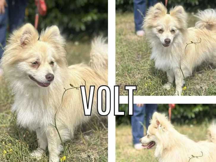 Notre association vous propose à l'adoption ce jeune chien Spitz Allemand de couleur beige et âgé d'un an prénommé Volt. Il peut cohabiter avec les enfants ainsi qu'avec d’autres animaux domestiques.