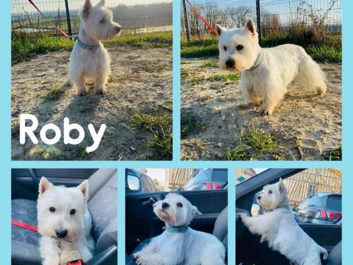 Roby est un West Highland White Terrier mâle, né le 31 juillet 2020, âgé de 5 ans. Ce chien blanc est proposé à la vente au prix de 600 euros, inscrit au Livre des Origines Français (LOF).