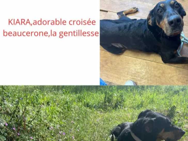 Nous mettons disponible à l'adoption cette chienne Beauceron noire et feu de dix ans nommée Kiara. Elle attend un foyer bienveillant pour une vie heureuse.