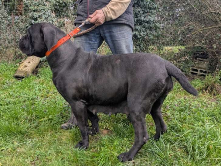 Je donne ma chienne Cane Corso. Elle est âgée de 4 ans et demi. Elle est de couleur noire.