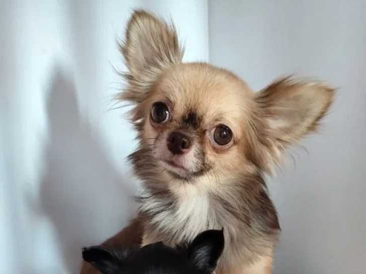 Nous vous proposons Typhaine, une chienne Chihuahua à poil long de couleur fauve, née le 13 décembre 2022.