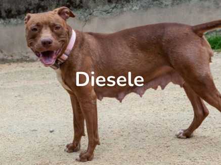 Diesele est une jolie femelle croisée dogue née en 2019 à la robe marron. Nous ne savons pas encore si elle s’entend avec ses congénères ou avec les chats. Elle a été sauvée par une autre association alors qu’elle vivait enfermée dans une cage avec ses chiots.