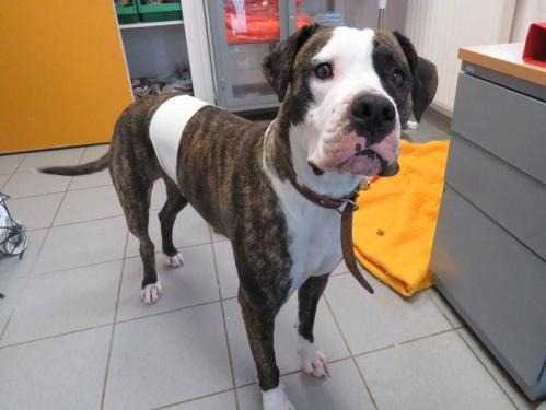 Nina est une femelle de grand gabarit de type Dogue Argentin à la robe bringée et blanche. Elle est née en 2018 et a encore toute la vie devant elle. Nina a du mal avec la vie en refuge et nous espérons qu’elle trouvera vite son foyer pour la vie.