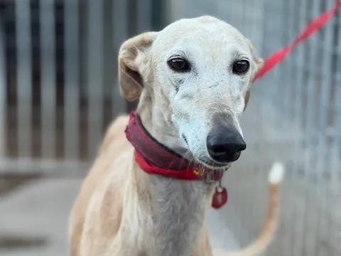 Notre refuge vous propose à l'adoption Bruma, une jeune chienne Lévrier Espagnol à la fourrure crème et âgée de deux ans. Elle espère trouver une famille aimante pour la vie.