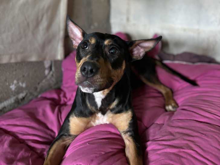 Maggie est son nom, cette chienne noir et feu âgée de trois ans que nous avons le plaisir de vous proposer à l'adoption. Elle s’entend bien avec des enfants ainsi qu'avec ses congénères.
