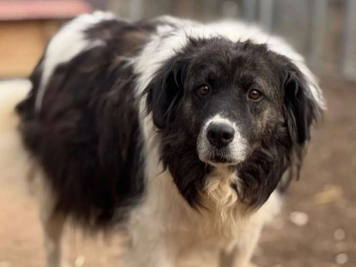 Nous proposons à l'adoption une chienne noire et blanche de douze ans nommée Panda. Elle est sociable avec ses congénères et espère trouver une famille aimante pour la vie.