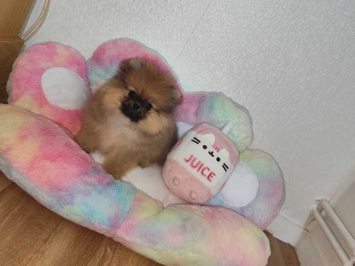 Je vends une merveilleuse femelle Spitz Nain très typée nounours. Elle a une très grosse fourrure et une grosse ossature, un corps compact et de grosses pattes de nounours.