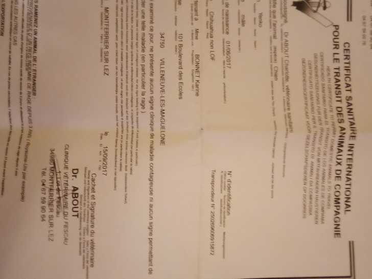 Papier de mon mâle reproducteurs beige SNOW à poils courts, de 1,7klg.