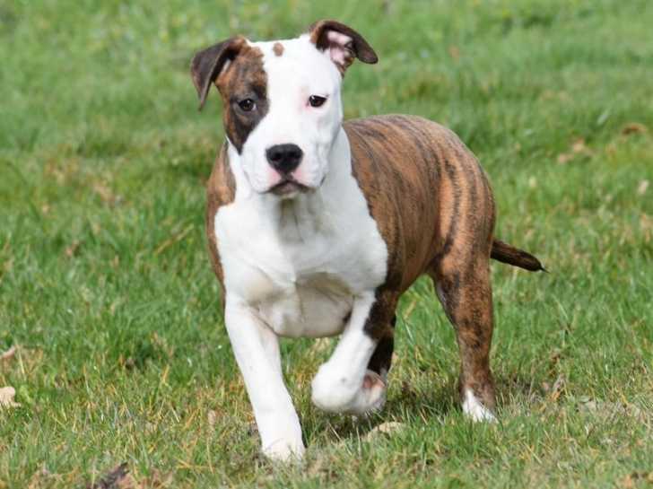 Sur une portée de sept chiots American Staffordshire Terrier nés le 12 septembre 2021, il nous reste une femelle toujours mise en vente. Elle possède un pelage bicolore rouge bringé et blanc et elle est inscrite dans le Livre des Origines Français (LOF).
