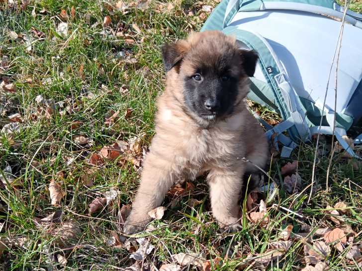 UN chiot MALE Tervueren reste à vendre. Il est de couleur fauve charbonné, il est né le 07/01/2025.