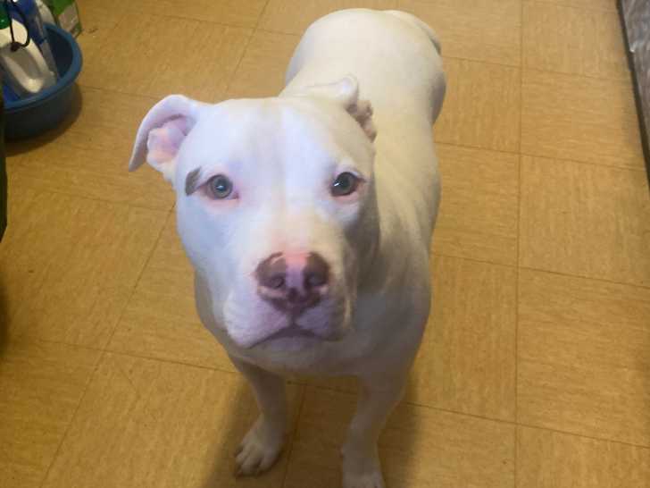 Nous vous proposons à l'adoption cette chienne American Bully à la fourrure fauve de six ans nommée Marta. Elle attend un foyer convivial qui lui offrira tout l'amour qu’elle mérite. Nous mettons nos chien...