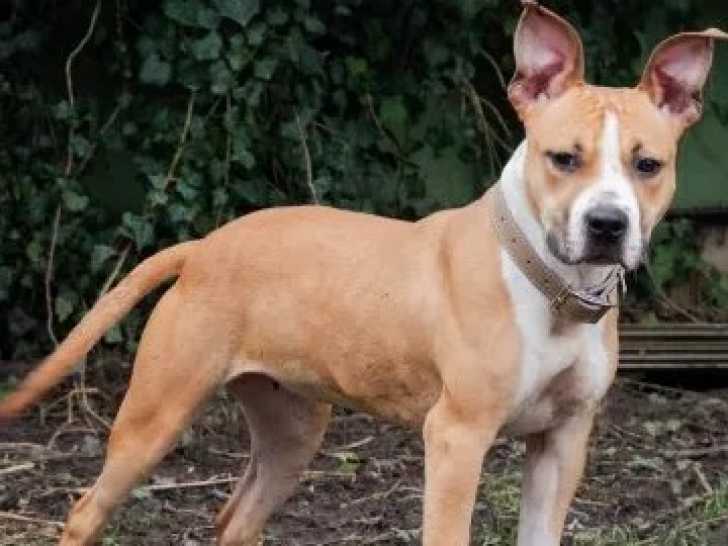 Nous mettons disponible à l'adoption Va-Bella, une jeune chienne Staffordshire Américain Terrier au pelage fauve de dix mois. Elle recherche un foyer doux et patient pour une vie épanouie.