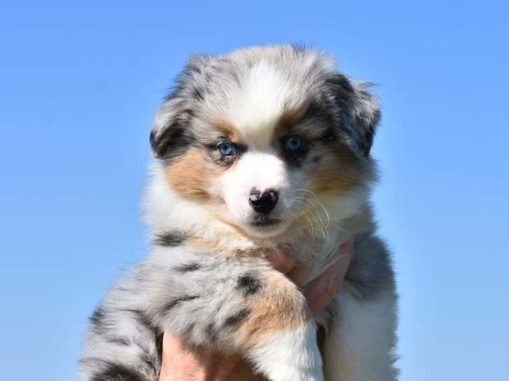 Disponible à la vente au prix de 3?000 euros, superbe chiot femelle Berger Américain Miniature bleue merle avec queue longue et yeux bleus. Elle est vive, affectueuse, inscrite au Livre des Origines Français (LOF) et bien équilibrée. Son poids adulte tournera autour de 10 kg. Elle est née de parents LOF de qualité, testés sains pour la dysplasie de la hanche et du coude et identifiés par ADN.