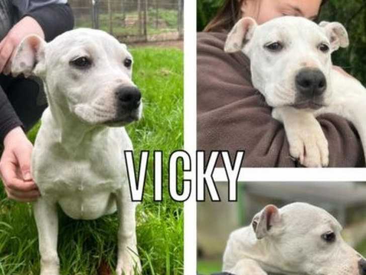 Nous vous proposons à l'adoption Vicky, un chiot femelle de couleur blanche et âgé de six mois cherchant une famille qui l'aimera. Elle s’entend bien avec ses congénères.