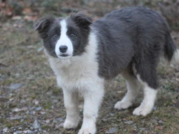 Nous proposons Alma, femelle Border Collie née le 7 août 2025 à l’élevage Herds Of Scotland. Issue d’une portée de cinq chiots inscrite au Livre des Origines Français (LOF) sous le code LOF-2025026044-2025-3, elle évolue aux côtés de trois femelles et deux mâles dans un cadre structuré. Sa robe bleu présente des nuances caractéristiques de la race, accompagnées d’une expression attentive et vive.