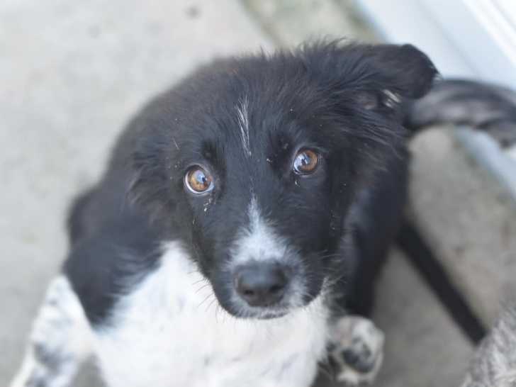Junie est un chiot femelle noir et blanc de quatre mois que nous vous proposons à l'adoption. Son éducation est à poursuivre.