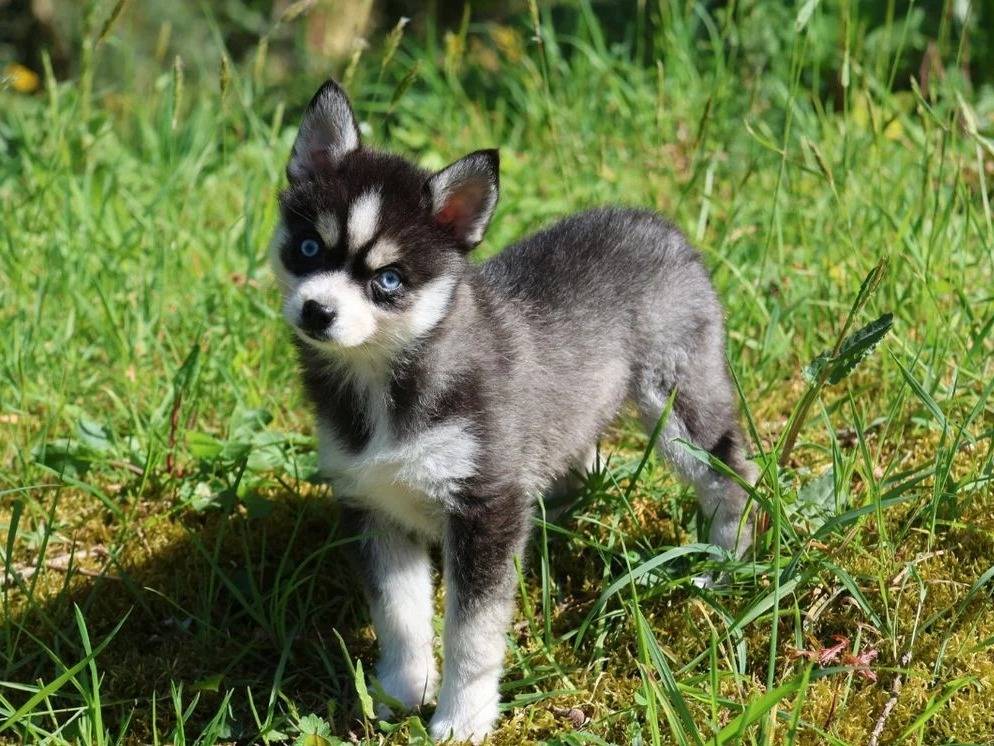 L'élevage Des Brumes de Brocéliande propose à la vente un chiot femelle Pomsky, née le 3 février 2026. Elle répond au nom de Betty Boop et présente une robe noire et blanche diluée, un pelage polaire et de superbes yeux bleus. De format extra nain, elle pèse actuellement 1,7 kg et devrait conserver un très petit gabarit à l'âge adulte.