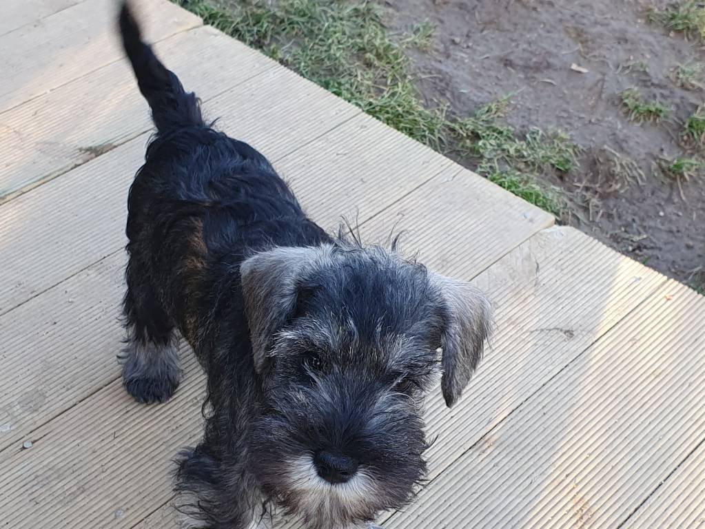 Un chiot femelle Schnauzer Nain poivre et sel est à vendre.