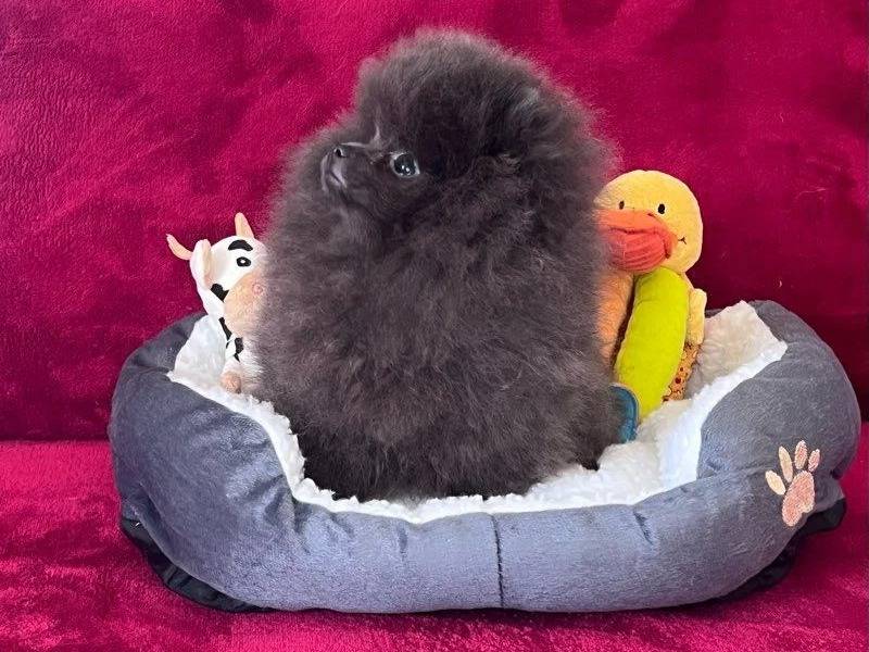 Nous proposons à la vente un chiot femelle Spitz née le 20 novembre 2025, présentant une robe bleue de couleur particulièrement rare. Elle affiche une silhouette très typée Poméranien, avec une fourrure généreuse et une tête ronde caractéristique. Son caractère est décrit comme très câlin et doux.