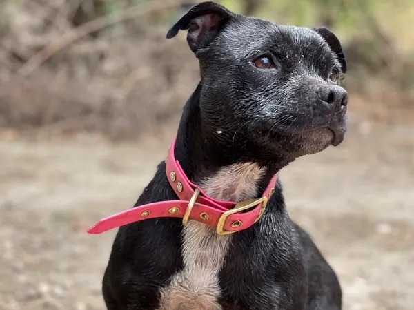 Nous vendons un chiot femelle noire de race Staffordshire Bull Terrier : âgée de trois mois, elle est déclarée au Livre des Origines Français (LOF). C’est un animal élevé en famille, avec des chats et des chiens.