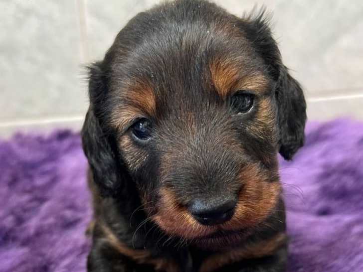 Je vends un chiot mâle Teckel né le 28 mai. C'est un Teckel standard à poil dur, à la robe noir et feu. Son père est I am du Chevalier Michel et sa mère est Imke vom Lohergraf. Elle est de lignée allemande....