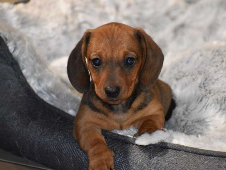 Une femelle Teckel Nain poil ras est née le 15 novembre 2025 à l’élevage du Moulin Sault. Elle est proposée à la réservation pour 2500 euros.