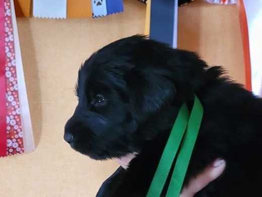Nous proposons à la vente le dernier chiot disponible d'une portée de dix chiots par Nuit Sauvage des Terres de Flore et Flat Passion's Querido Precious Emerald.