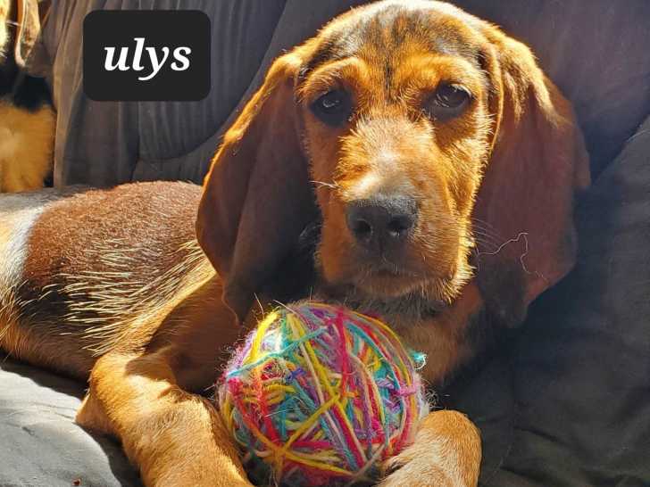 Nous sommes ravis de vous présenter Ulys, un chiot mâle de trois mois au pelage noir et feu. Il adore les promenades et aime être caressé. Il lui faudra impérativement un jardin.
