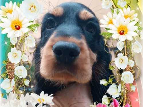 Avec son pelage noir et feu, ce chiot descend de parents testés de la néphropathie familiale (NF) et de l’atrophie progressive de la rétine (APR).