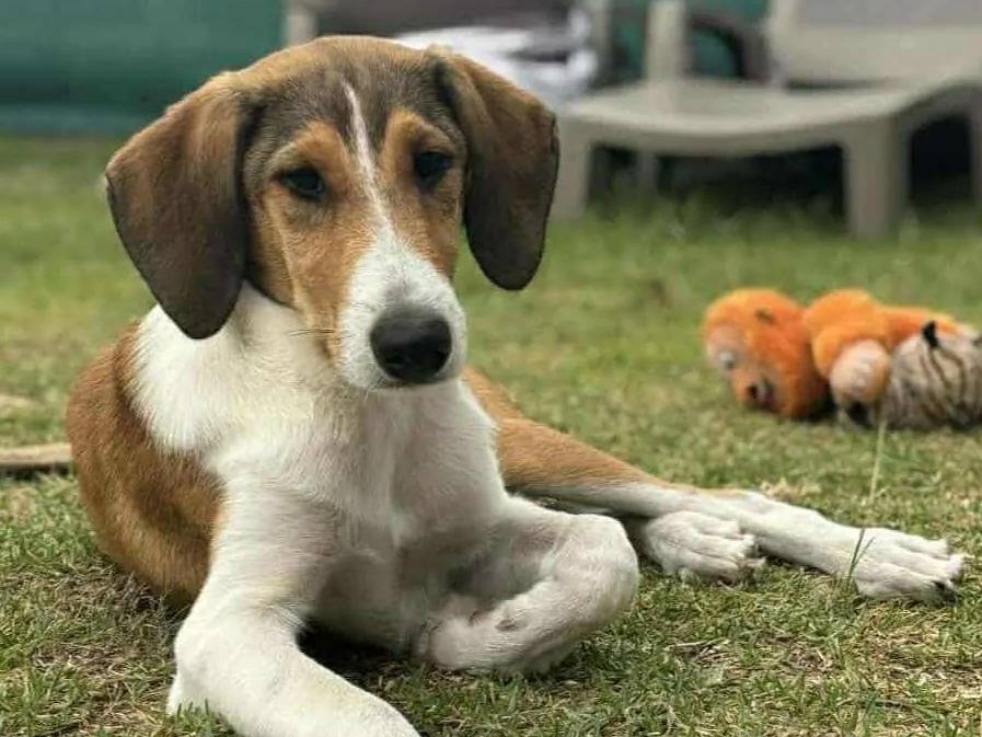 Nous avons le plaisir de vous proposer à l’adoption Aztek, un chiot mâle au pelage marron et blanc de neuf mois. Dernier de sa fratrie, il est sociable avec les congénères, les poules et les chevaux, et apprend à vivre avec les chats de loin. Il recherche un foyer attentionné et patient.