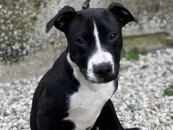 Venom est un chiot mâle noir tacheté de blanc de six mois proposé à l'adoption par notre refuge. Il recherche une famille bienveillante qui poursuivra son éducation.