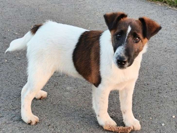 Atom est un Fox Terrier à Poil Lisse né en septembre 2025. Ce petit mâle joyeux et affectueux est proposé au prix de 500 euros.