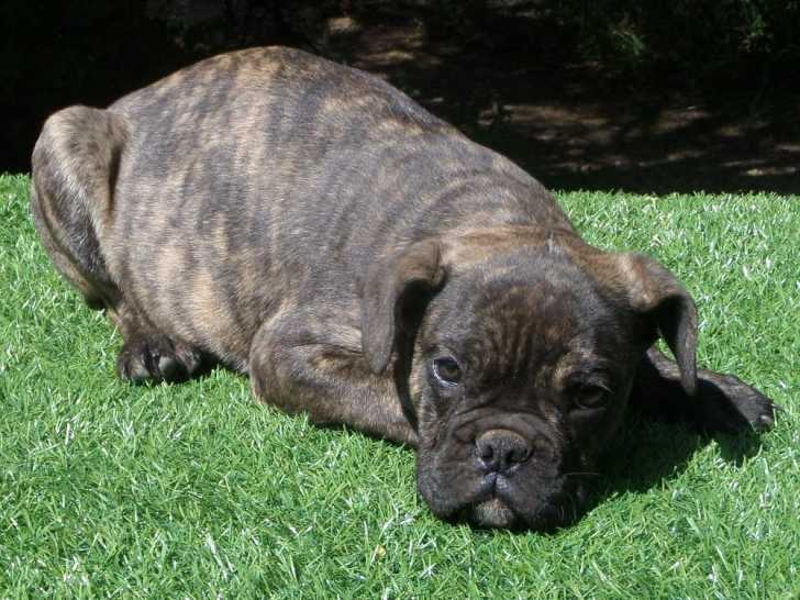 Éleveur professionnel propose a la vente Poker, magnifique chiot Old English Bulldog né le 25/12/19. Il est de couleur bringée.