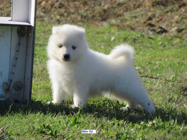 Cet amour de chiot est inscrit au LOF, pucé, vacciné et vermifugé. Les parents sont Jarka de Jerrie Black et Nykono. Nous élevons nos chiens en famille et avec bienveillance. Le Samoyède est un chien très proche de l'humain qui cherche à faire plaisir aux membres de son foyer. Son éducation n'est pas difficile, mais doit être faite en douceur.
