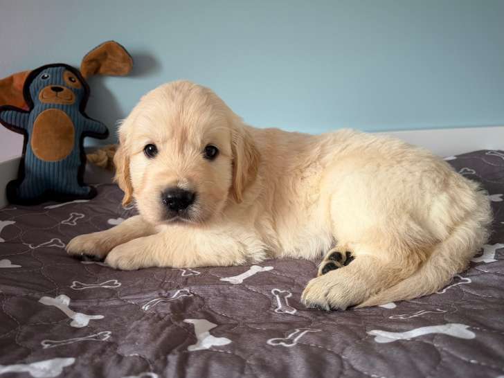 L'élevage familial de la Vallée du Petit Pré propose à la réservation 2 chiots mâles Golden Retriever LOF nés le 1er octobre 2025.