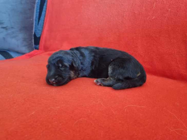 Nous aimons observer la singularité qui s’esquisse dès les premiers jours. Chiot N°6 De l'hacienda del matador, femelle Berger Allemand noire née le 20 février 2026 à Colombier Saugnieu, attire déjà l’attention...