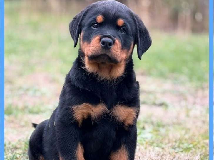 Nous proposons un chiot Rottweiler né le 10 octobre 2025, inscrit au Livre des Origines Français (LOF). Ce compagnon de grand gabarit est pucé, vacciné et muni d’un certificat vétérinaire.