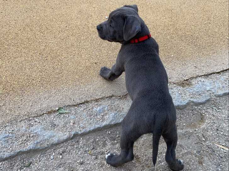 Je vends Rivers, chiot Staffordshire Bull Terrier bleu, inscrite au LOF et âgé de 11 mois.