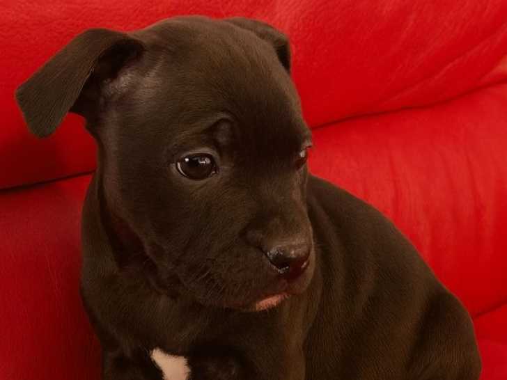 Pour 1500 euros, adoptez une magnifique chiot femelle Staffordshire Bull Terrier née le 16 novembre 2025. Elle arbore une robe noire élégante et un tempérament équilibré, promise à devenir une compagne fidèle.