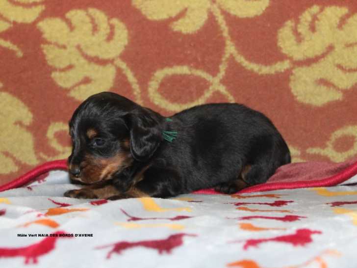 Notre chienne Naïa a eu une belle portée de chiots Teckel à poil long avec notre étalon allemand Socles. Il reste un adorable chiot disponible à la vente.