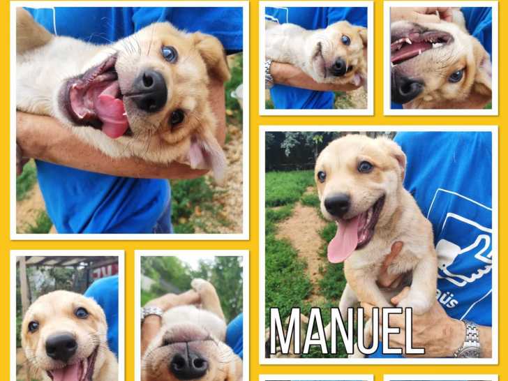Manuel est un adorable chiot sable de type Labrador Retriever né en mai 2021. Il devrait être de gabarit moyen à l’âge adulte (la maman fait autour de 25 kilos). C’est un chiot trouvé dans un site de construction avec sa maman et le reste de la portée. Il vit maintenant au refuge.