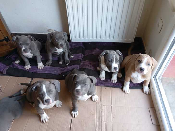 Je vends des chiots American Bully de 3 mois. Ils sont prêts à aller dans des familles sérieuses, avec enfants de préférence, car ce sont des chiens très protecteurs avec les enfants.
