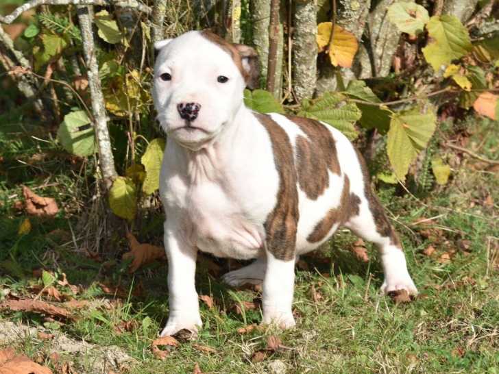 Nous avons d'adorables chiots American Staffordshire Terrier nés le 12 septembre 2021 à vendre. Ils sont fauve et blanc, avec diverses quantité de blanc en fonction du chiot.