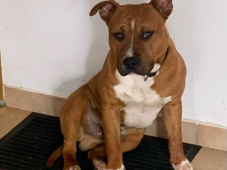 L'élevage du Mas d'Elna vous présente sa première petite femelle Amstaff de l'année 2026, née le 28 janvier et disponible à la réservation. Elle vit à la ferme avec pleins d'animaux (chiens, chats, vaches,...