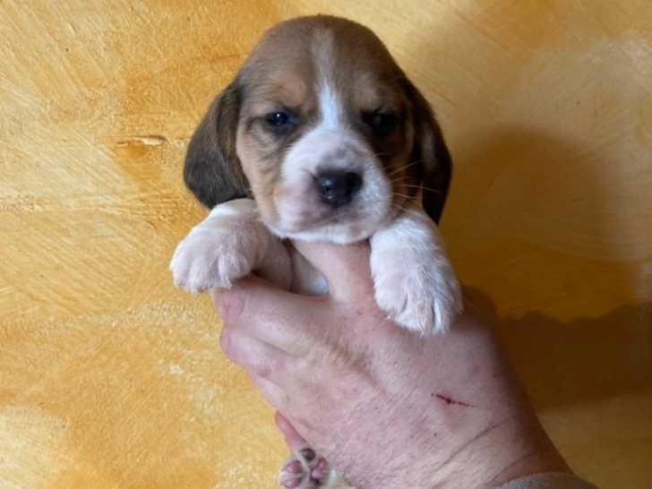 Nous proposons des chiots Beagles nés le 4 novembre 2025, un mâle et trois femelles, élevés en famille. Chaque chiot est pucé, vacciné, vermifugé et suivi par un vétérinaire pour un certificat de bonne...