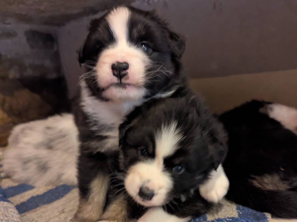 Chiots Berger Australien pure race mais non LOF , nés le 28 septembre 2025 en Dordogne sont à réserver. D'une portées de six chiots, Il reste deux jolies femelles tricolores à réserver.