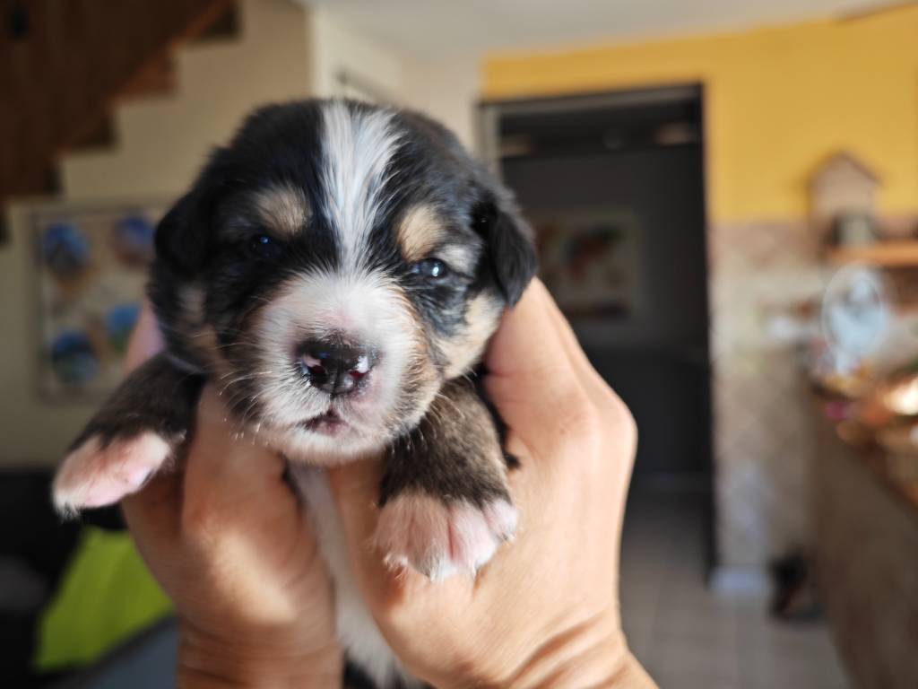 Taïga a eu sept magnifiques chiots, et trois d'entre eux, 2 mâles et 1 femelle noir tricolore, cherchent leur famille pour la vie.